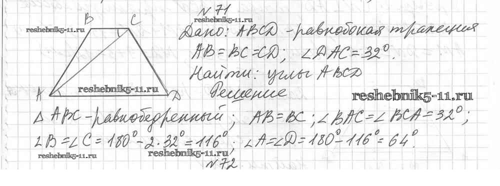 Готовая домашняя работа с ответами по Геометрии за 8 класс Мерзляк, Полонский, Рабинович, Якир Дидактические материалы Алгоритм успеха Вентана-граф 2017 ФГОС - Вариант 1 71