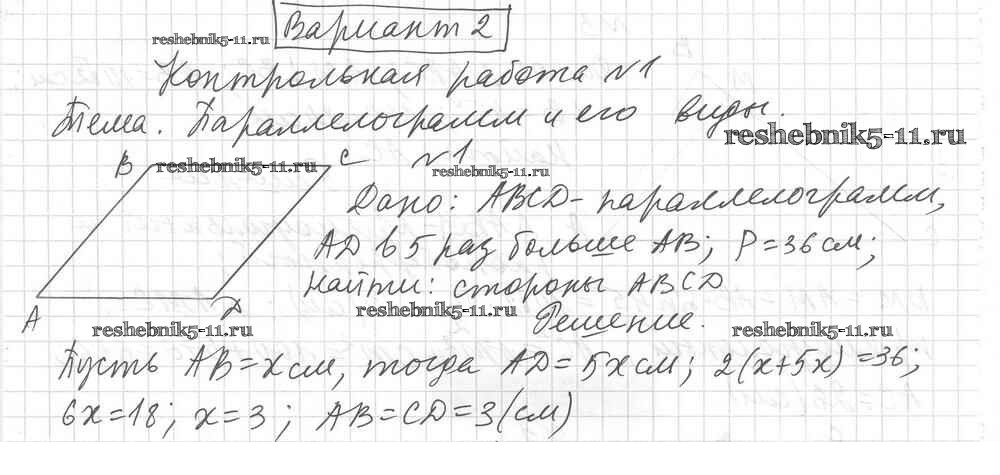 Готовая домашняя работа с ответами по Геометрии за 8 класс Мерзляк, Полонский, Рабинович, Якир Дидактические материалы Алгоритм успеха Вентана-граф 2017 ФГОС - Вариант 2 КР-1