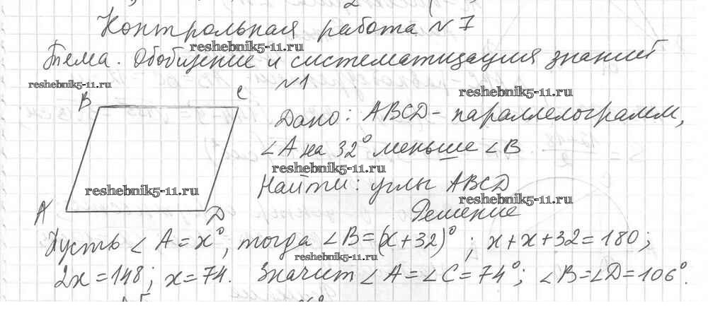 Готовая домашняя работа с ответами по Геометрии за 8 класс Мерзляк, Полонский, Рабинович, Якир Дидактические материалы Алгоритм успеха Вентана-граф 2017 ФГОС - Вариант 2 КР-7