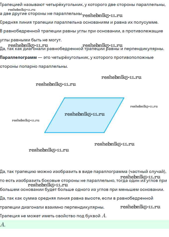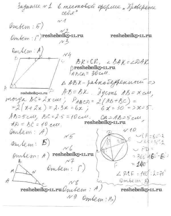 Геометрия за 8 класс Мерзляк Учебник Алгоритм успеха Вентана-граф проверь себя №1