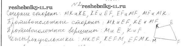 Готовая домашняя работа с ответами по Геометрии за 8 класс Мерзляк, Полонский, Якир Учебник Алгоритм успеха Вентана-граф 2015 ФГОС - § 1. Четырёхугольник и его элементы 2