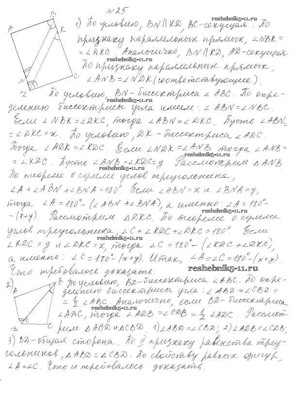 Готовая домашняя работа с ответами по Геометрии за 8 класс Мерзляк, Полонский, Якир Учебник Алгоритм успеха Вентана-граф 2015 ФГОС - § 1. Четырёхугольник и его элементы 25