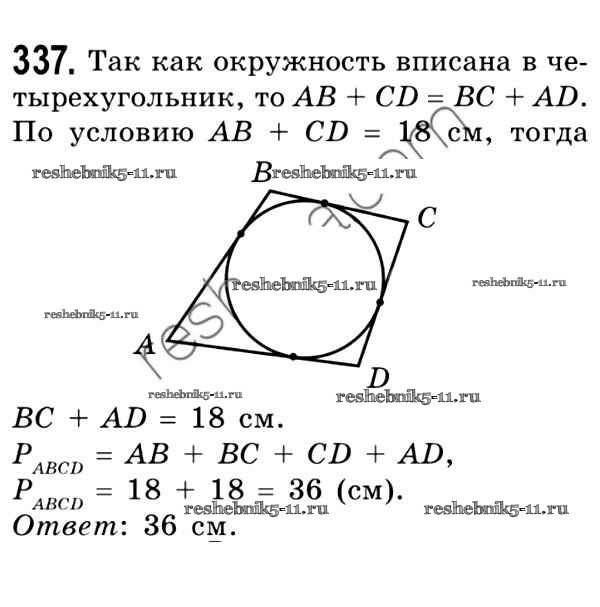 Готовая домашняя работа с ответами по Геометрии за 8 класс Мерзляк, Полонский, Якир Учебник Алгоритм успеха Вентана-граф 2015 ФГОС - § 10. Описанная и вписанная окружности четырехугольника 337