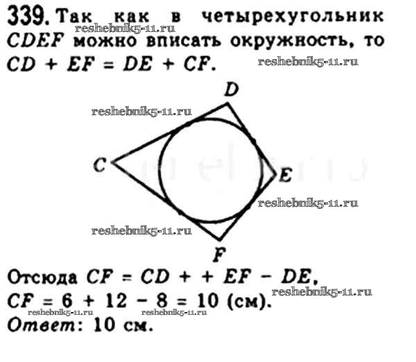 Готовая домашняя работа с ответами по Геометрии за 8 класс Мерзляк, Полонский, Якир Учебник Алгоритм успеха Вентана-граф 2015 ФГОС - § 10. Описанная и вписанная окружности четырехугольника 339