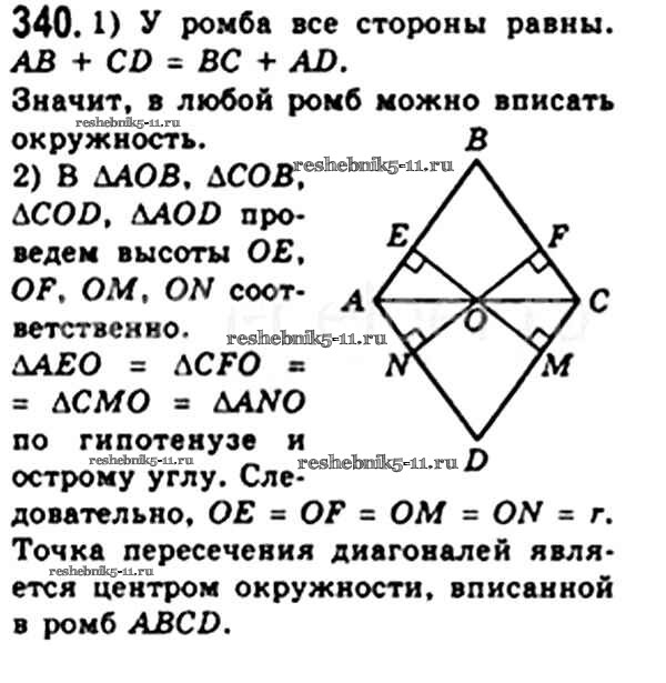 Готовая домашняя работа с ответами по Геометрии за 8 класс Мерзляк, Полонский, Якир Учебник Алгоритм успеха Вентана-граф 2015 ФГОС - § 10. Описанная и вписанная окружности четырехугольника 340