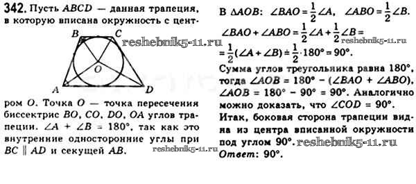 Готовая домашняя работа с ответами по Геометрии за 8 класс Мерзляк, Полонский, Якир Учебник Алгоритм успеха Вентана-граф 2015 ФГОС - § 10. Описанная и вписанная окружности четырехугольника 342