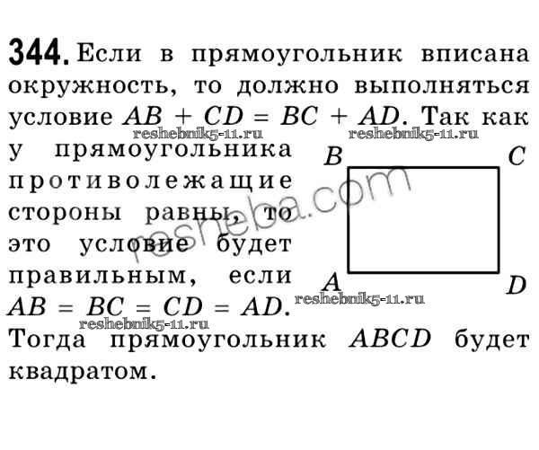 Готовая домашняя работа с ответами по Геометрии за 8 класс Мерзляк, Полонский, Якир Учебник Алгоритм успеха Вентана-граф 2015 ФГОС - § 10. Описанная и вписанная окружности четырехугольника 344
