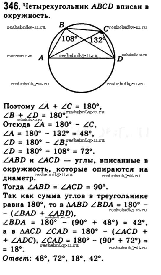 Готовая домашняя работа с ответами по Геометрии за 8 класс Мерзляк, Полонский, Якир Учебник Алгоритм успеха Вентана-граф 2015 ФГОС - § 10. Описанная и вписанная окружности четырехугольника 346