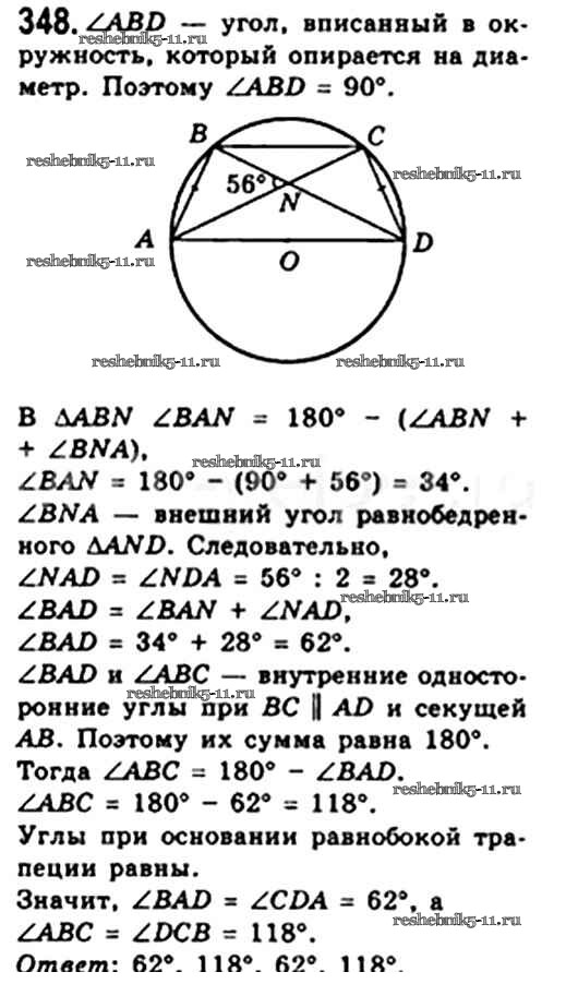 Готовая домашняя работа с ответами по Геометрии за 8 класс Мерзляк, Полонский, Якир Учебник Алгоритм успеха Вентана-граф 2015 ФГОС - § 10. Описанная и вписанная окружности четырехугольника 348