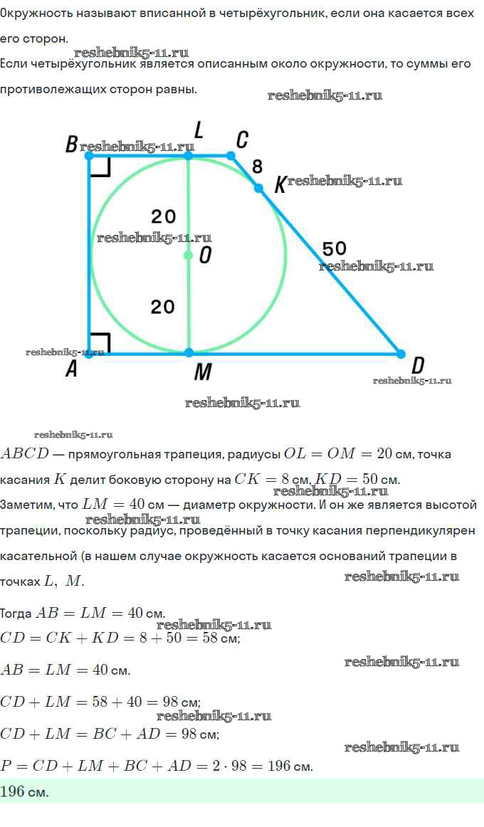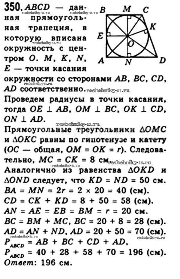 Готовая домашняя работа с ответами по Геометрии за 8 класс Мерзляк, Полонский, Якир Учебник Алгоритм успеха Вентана-граф 2015 ФГОС - § 10. Описанная и вписанная окружности четырехугольника 350
