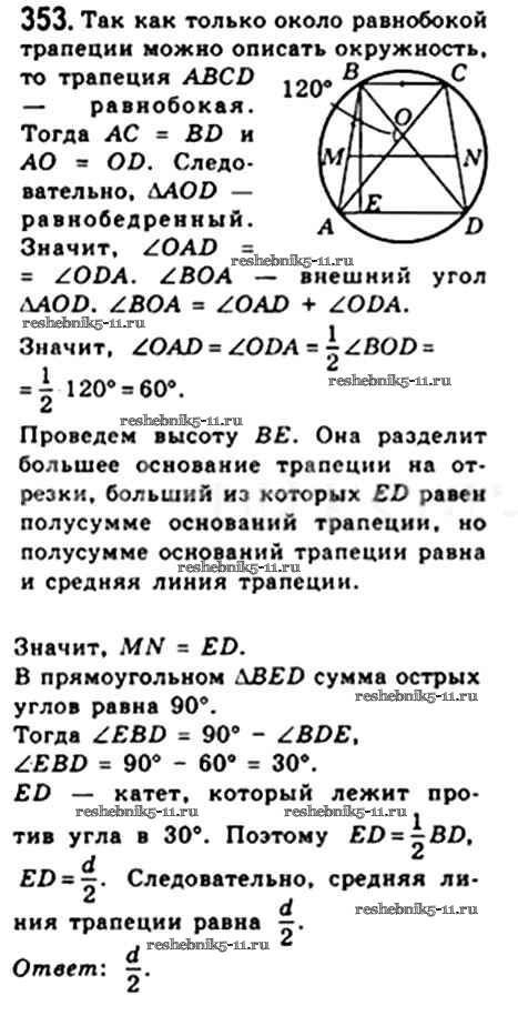 Готовая домашняя работа с ответами по Геометрии за 8 класс Мерзляк, Полонский, Якир Учебник Алгоритм успеха Вентана-граф 2015 ФГОС - § 10. Описанная и вписанная окружности четырехугольника 353