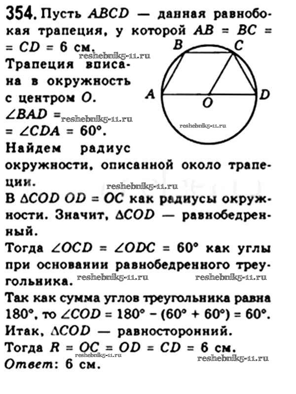 Готовая домашняя работа с ответами по Геометрии за 8 класс Мерзляк, Полонский, Якир Учебник Алгоритм успеха Вентана-граф 2015 ФГОС - § 10. Описанная и вписанная окружности четырехугольника 354
