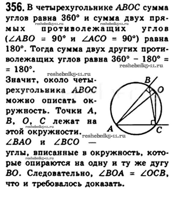 Готовая домашняя работа с ответами по Геометрии за 8 класс Мерзляк, Полонский, Якир Учебник Алгоритм успеха Вентана-граф 2015 ФГОС - § 10. Описанная и вписанная окружности четырехугольника 356