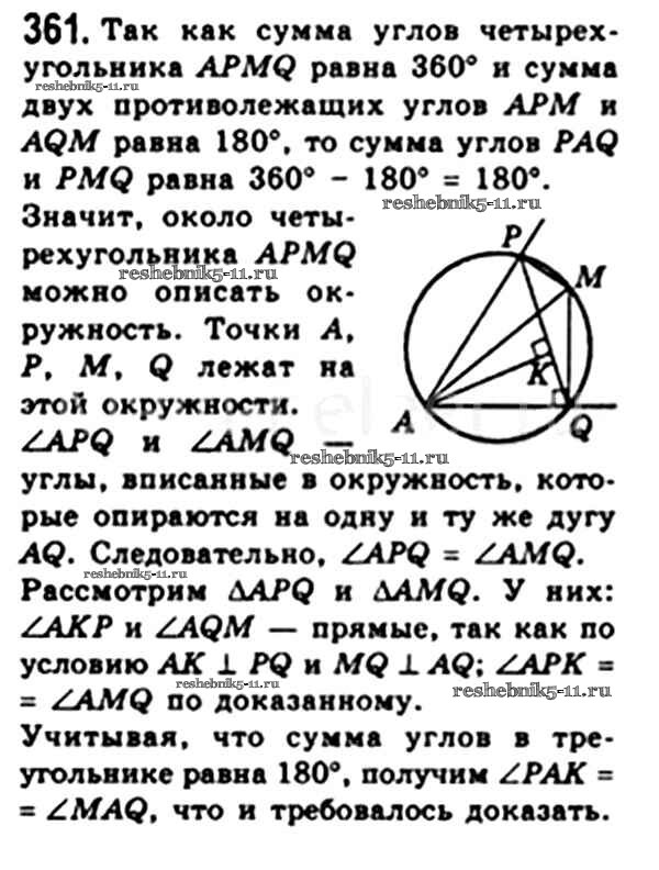 Готовая домашняя работа с ответами по Геометрии за 8 класс Мерзляк, Полонский, Якир Учебник Алгоритм успеха Вентана-граф 2015 ФГОС - § 10. Описанная и вписанная окружности четырехугольника 361