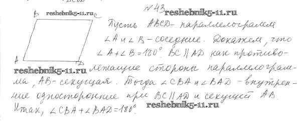 Готовая домашняя работа с ответами по Геометрии за 8 класс Мерзляк, Полонский, Якир Учебник Алгоритм успеха Вентана-граф 2015 ФГОС - § 2. Параллелограмм. Свойства параллелограмма 43
