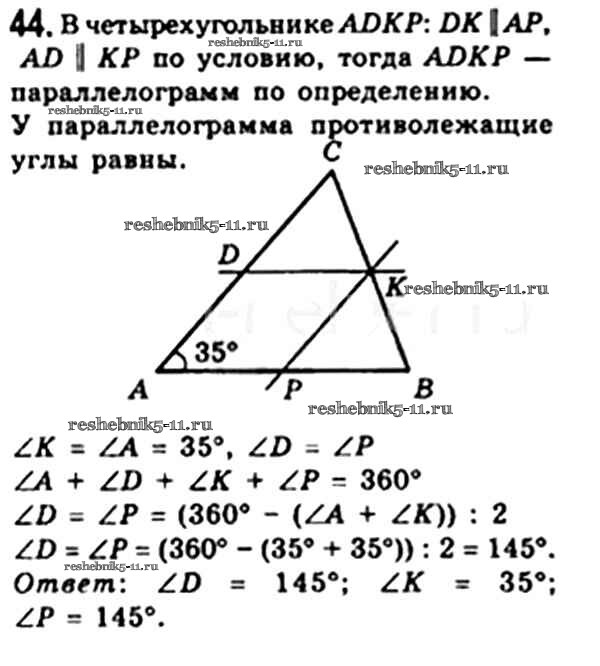 Готовая домашняя работа с ответами по Геометрии за 8 класс Мерзляк, Полонский, Якир Учебник Алгоритм успеха Вентана-граф 2015 ФГОС - § 2. Параллелограмм. Свойства параллелограмма 44