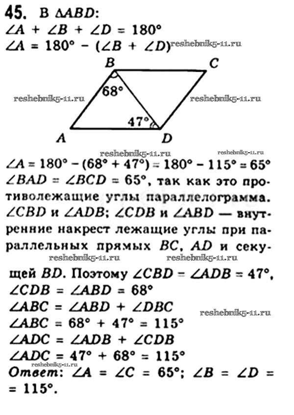 Готовая домашняя работа с ответами по Геометрии за 8 класс Мерзляк, Полонский, Якир Учебник Алгоритм успеха Вентана-граф 2015 ФГОС - § 2. Параллелограмм. Свойства параллелограмма 45