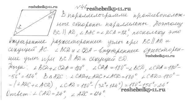 Готовая домашняя работа с ответами по Геометрии за 8 класс Мерзляк, Полонский, Якир Учебник Алгоритм успеха Вентана-граф 2015 ФГОС - § 2. Параллелограмм. Свойства параллелограмма 46