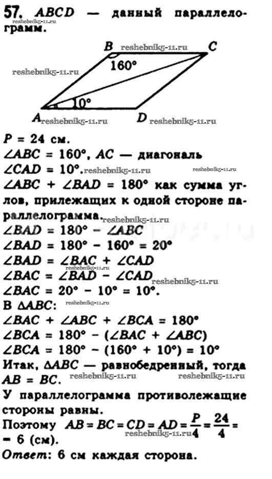 Готовая домашняя работа с ответами по Геометрии за 8 класс Мерзляк, Полонский, Якир Учебник Алгоритм успеха Вентана-граф 2015 ФГОС - § 2. Параллелограмм. Свойства параллелограмма 57