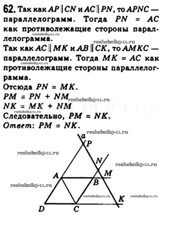 Готовая домашняя работа с ответами по Геометрии за 8 класс Мерзляк, Полонский, Якир Учебник Алгоритм успеха Вентана-граф 2015 ФГОС - § 2. Параллелограмм. Свойства параллелограмма 62