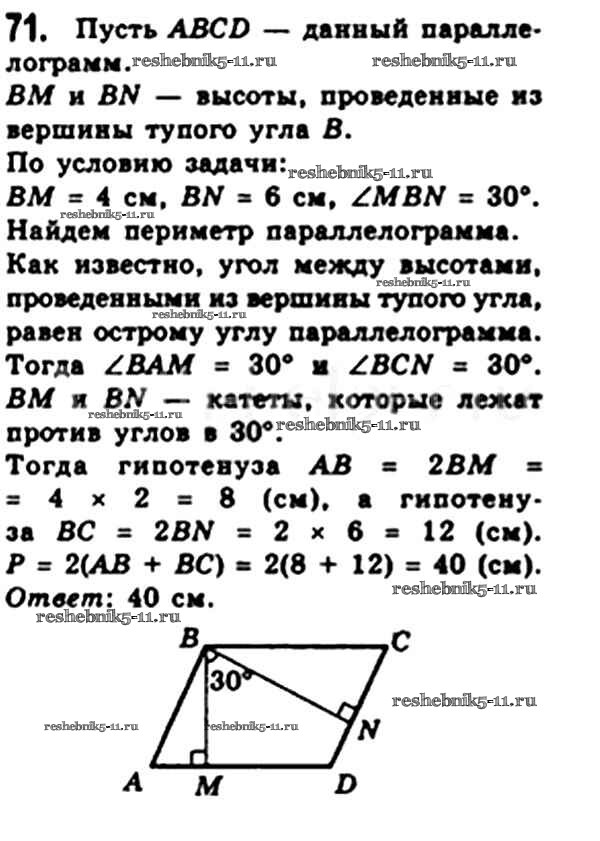 Готовая домашняя работа с ответами по Геометрии за 8 класс Мерзляк, Полонский, Якир Учебник Алгоритм успеха Вентана-граф 2015 ФГОС - § 2. Параллелограмм. Свойства параллелограмма 71