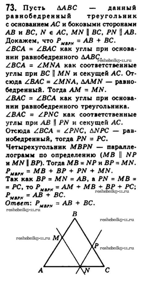 Готовая домашняя работа с ответами по Геометрии за 8 класс Мерзляк, Полонский, Якир Учебник Алгоритм успеха Вентана-граф 2015 ФГОС - § 2. Параллелограмм. Свойства параллелограмма 73