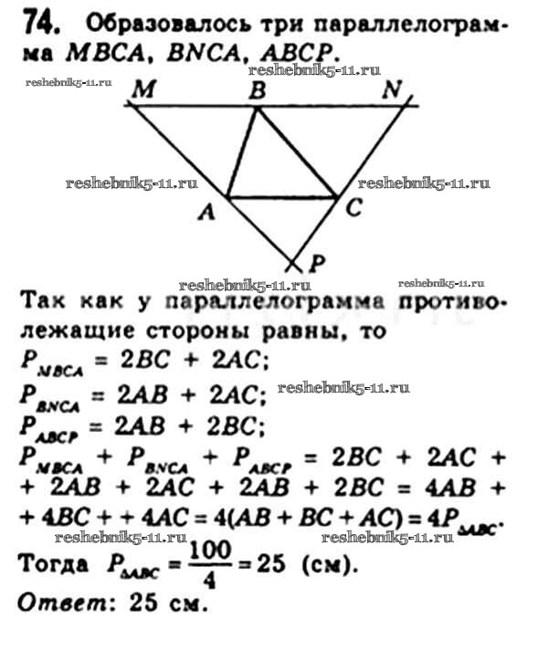 Готовая домашняя работа с ответами по Геометрии за 8 класс Мерзляк, Полонский, Якир Учебник Алгоритм успеха Вентана-граф 2015 ФГОС - § 2. Параллелограмм. Свойства параллелограмма 74
