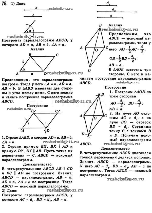Готовая домашняя работа с ответами по Геометрии за 8 класс Мерзляк, Полонский, Якир Учебник Алгоритм успеха Вентана-граф 2015 ФГОС - § 2. Параллелограмм. Свойства параллелограмма 75
