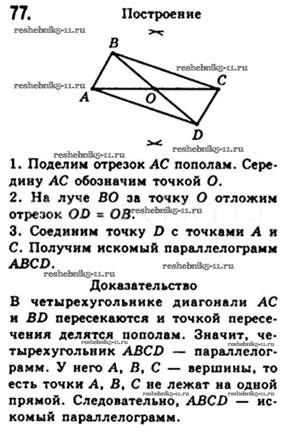 Готовая домашняя работа с ответами по Геометрии за 8 класс Мерзляк, Полонский, Якир Учебник Алгоритм успеха Вентана-граф 2015 ФГОС - § 2. Параллелограмм. Свойства параллелограмма 77