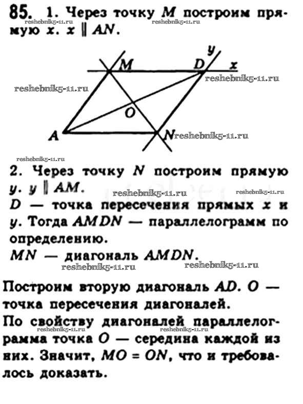 Готовая домашняя работа с ответами по Геометрии за 8 класс Мерзляк, Полонский, Якир Учебник Алгоритм успеха Вентана-граф 2015 ФГОС - § 2. Параллелограмм. Свойства параллелограмма 85