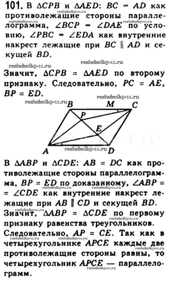 Готовая домашняя работа с ответами по Геометрии за 8 класс Мерзляк, Полонский, Якир Учебник Алгоритм успеха Вентана-граф 2015 ФГОС - § 3. Признаки параллелограмма 101