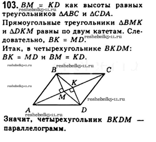 Готовая домашняя работа с ответами по Геометрии за 8 класс Мерзляк, Полонский, Якир Учебник Алгоритм успеха Вентана-граф 2015 ФГОС - § 3. Признаки параллелограмма 103