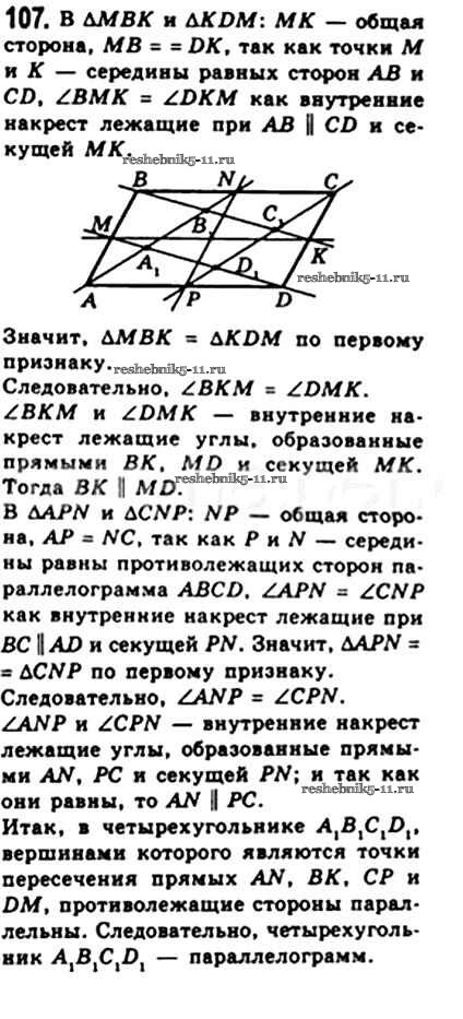 Готовая домашняя работа с ответами по Геометрии за 8 класс Мерзляк, Полонский, Якир Учебник Алгоритм успеха Вентана-граф 2015 ФГОС - § 3. Признаки параллелограмма 107
