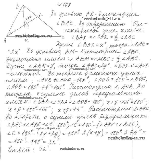 Готовая домашняя работа с ответами по Геометрии за 8 класс Мерзляк, Полонский, Якир Учебник Алгоритм успеха Вентана-граф 2015 ФГОС - § 3. Признаки параллелограмма 108