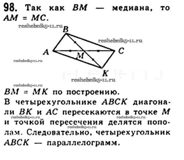 Готовая домашняя работа с ответами по Геометрии за 8 класс Мерзляк, Полонский, Якир Учебник Алгоритм успеха Вентана-граф 2015 ФГОС - § 3. Признаки параллелограмма 98
