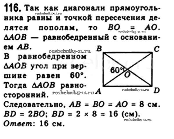 Готовая домашняя работа с ответами по Геометрии за 8 класс Мерзляк, Полонский, Якир Учебник Алгоритм успеха Вентана-граф 2015 ФГОС - § 4. Прямоугольник 116