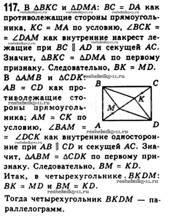 Готовая домашняя работа с ответами по Геометрии за 8 класс Мерзляк, Полонский, Якир Учебник Алгоритм успеха Вентана-граф 2015 ФГОС - § 4. Прямоугольник 117