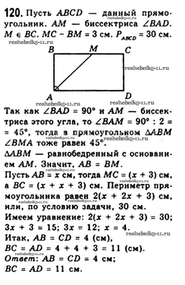 Готовая домашняя работа с ответами по Геометрии за 8 класс Мерзляк, Полонский, Якир Учебник Алгоритм успеха Вентана-граф 2015 ФГОС - § 4. Прямоугольник 120