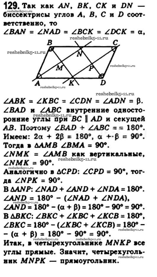 Готовая домашняя работа с ответами по Геометрии за 8 класс Мерзляк, Полонский, Якир Учебник Алгоритм успеха Вентана-граф 2015 ФГОС - § 4. Прямоугольник 129