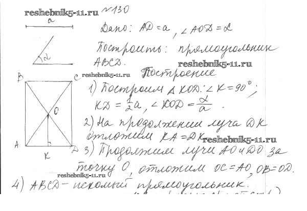 Готовая домашняя работа с ответами по Геометрии за 8 класс Мерзляк, Полонский, Якир Учебник Алгоритм успеха Вентана-граф 2015 ФГОС - § 4. Прямоугольник 130