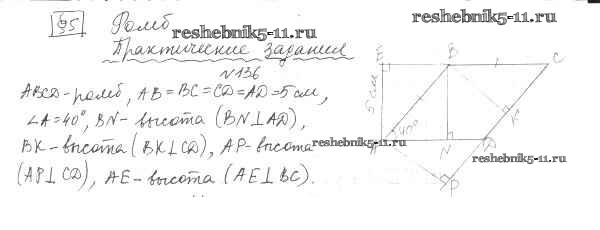 Готовая домашняя работа с ответами по Геометрии за 8 класс Мерзляк, Полонский, Якир Учебник Алгоритм успеха Вентана-граф 2015 ФГОС - § 5. Ромб 136