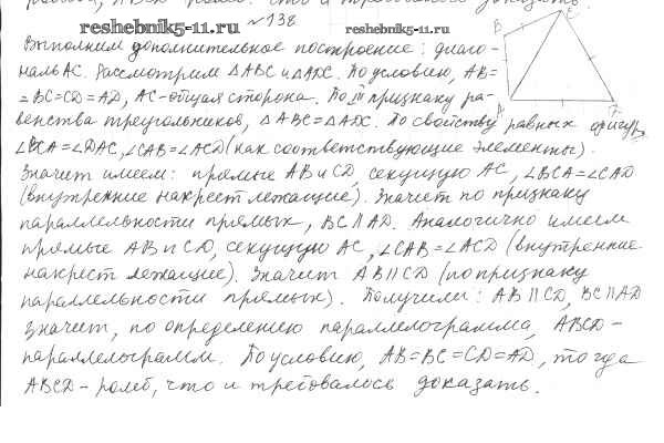 Готовая домашняя работа с ответами по Геометрии за 8 класс Мерзляк, Полонский, Якир Учебник Алгоритм успеха Вентана-граф 2015 ФГОС - § 5. Ромб 138