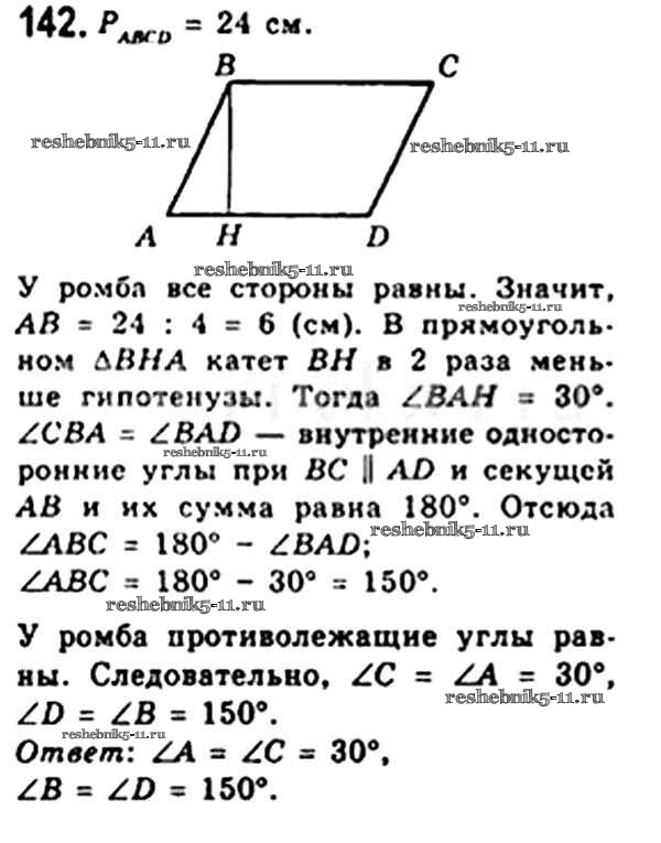 Готовая домашняя работа с ответами по Геометрии за 8 класс Мерзляк, Полонский, Якир Учебник Алгоритм успеха Вентана-граф 2015 ФГОС - § 5. Ромб 142