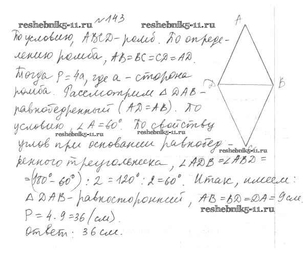 Готовая домашняя работа с ответами по Геометрии за 8 класс Мерзляк, Полонский, Якир Учебник Алгоритм успеха Вентана-граф 2015 ФГОС - § 5. Ромб 143