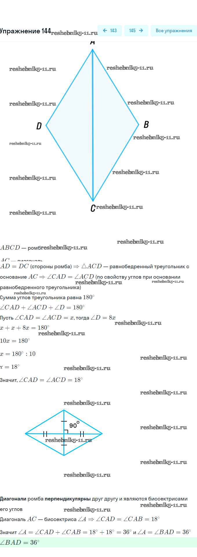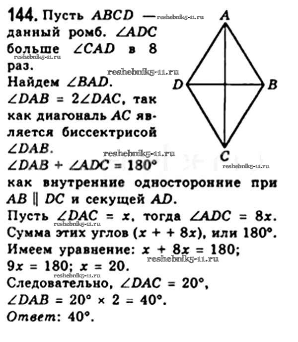 Готовая домашняя работа с ответами по Геометрии за 8 класс Мерзляк, Полонский, Якир Учебник Алгоритм успеха Вентана-граф 2015 ФГОС - § 5. Ромб 144