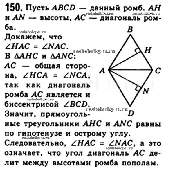 Готовая домашняя работа с ответами по Геометрии за 8 класс Мерзляк, Полонский, Якир Учебник Алгоритм успеха Вентана-граф 2015 ФГОС - § 5. Ромб 150
