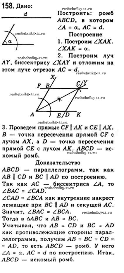 Готовая домашняя работа с ответами по Геометрии за 8 класс Мерзляк, Полонский, Якир Учебник Алгоритм успеха Вентана-граф 2015 ФГОС - § 5. Ромб 158