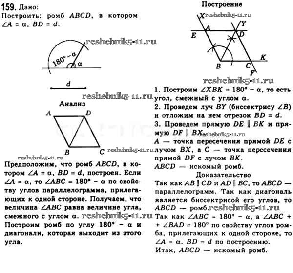 Готовая домашняя работа с ответами по Геометрии за 8 класс Мерзляк, Полонский, Якир Учебник Алгоритм успеха Вентана-граф 2015 ФГОС - § 5. Ромб 159