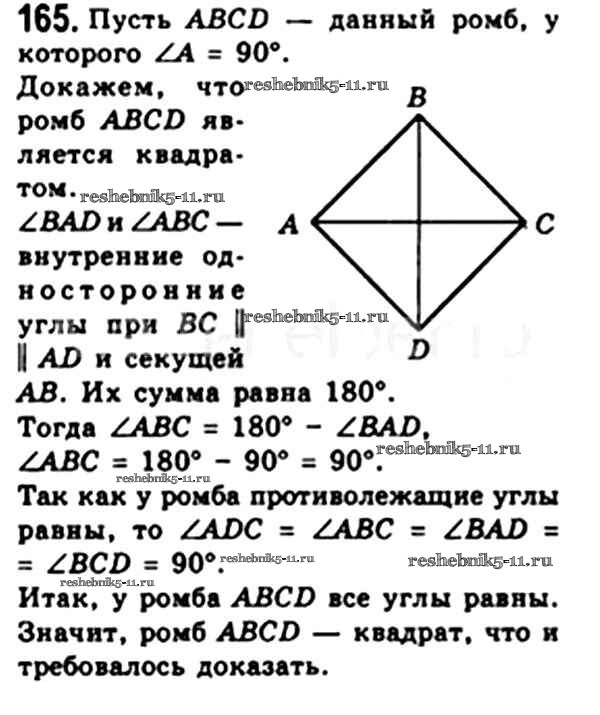 Готовая домашняя работа с ответами по Геометрии за 8 класс Мерзляк, Полонский, Якир Учебник Алгоритм успеха Вентана-граф 2015 ФГОС - § 6. Квадрат 165