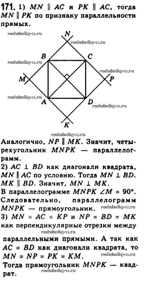 Готовая домашняя работа с ответами по Геометрии за 8 класс Мерзляк, Полонский, Якир Учебник Алгоритм успеха Вентана-граф 2015 ФГОС - § 6. Квадрат 171